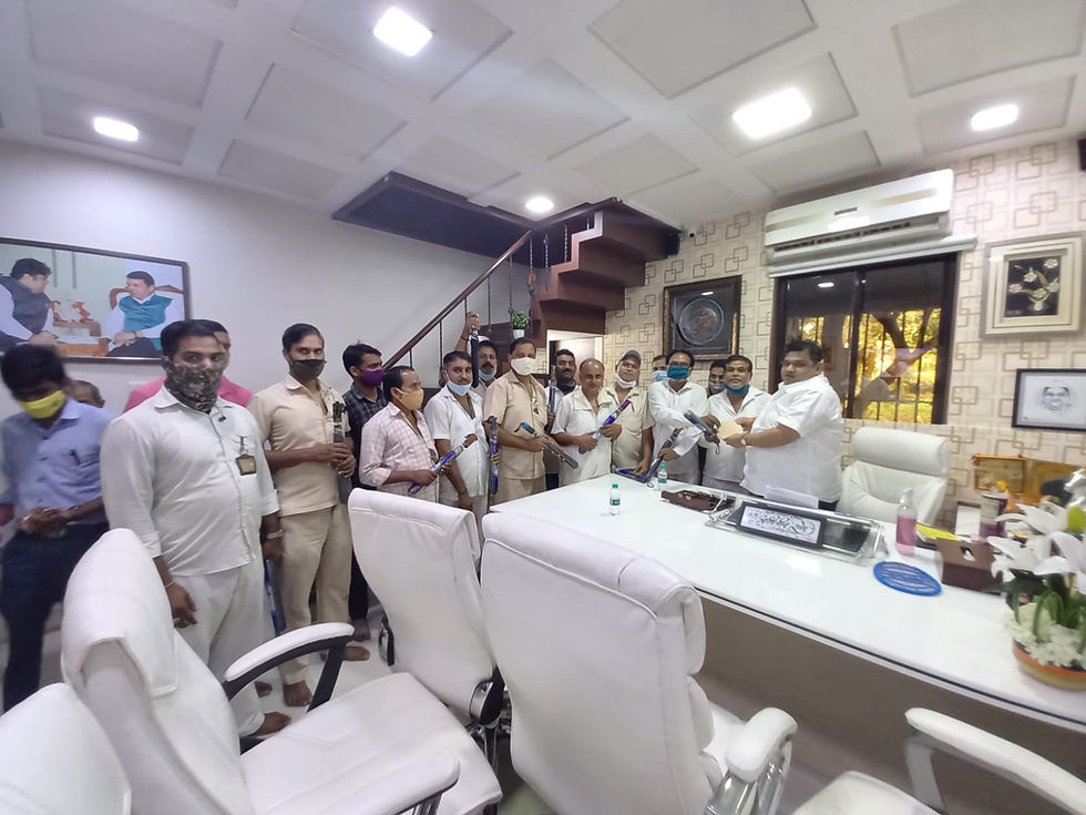 विख्यात कामगार नेता श्री अभिजीत राणे द्वारा धडक ऑटो रिक्शा टॅक्सी चालक मालक युनियन के सदस्यों के लिए बडे पैमाने पर छतरी , फेस मास्क व किचेन का वितरण