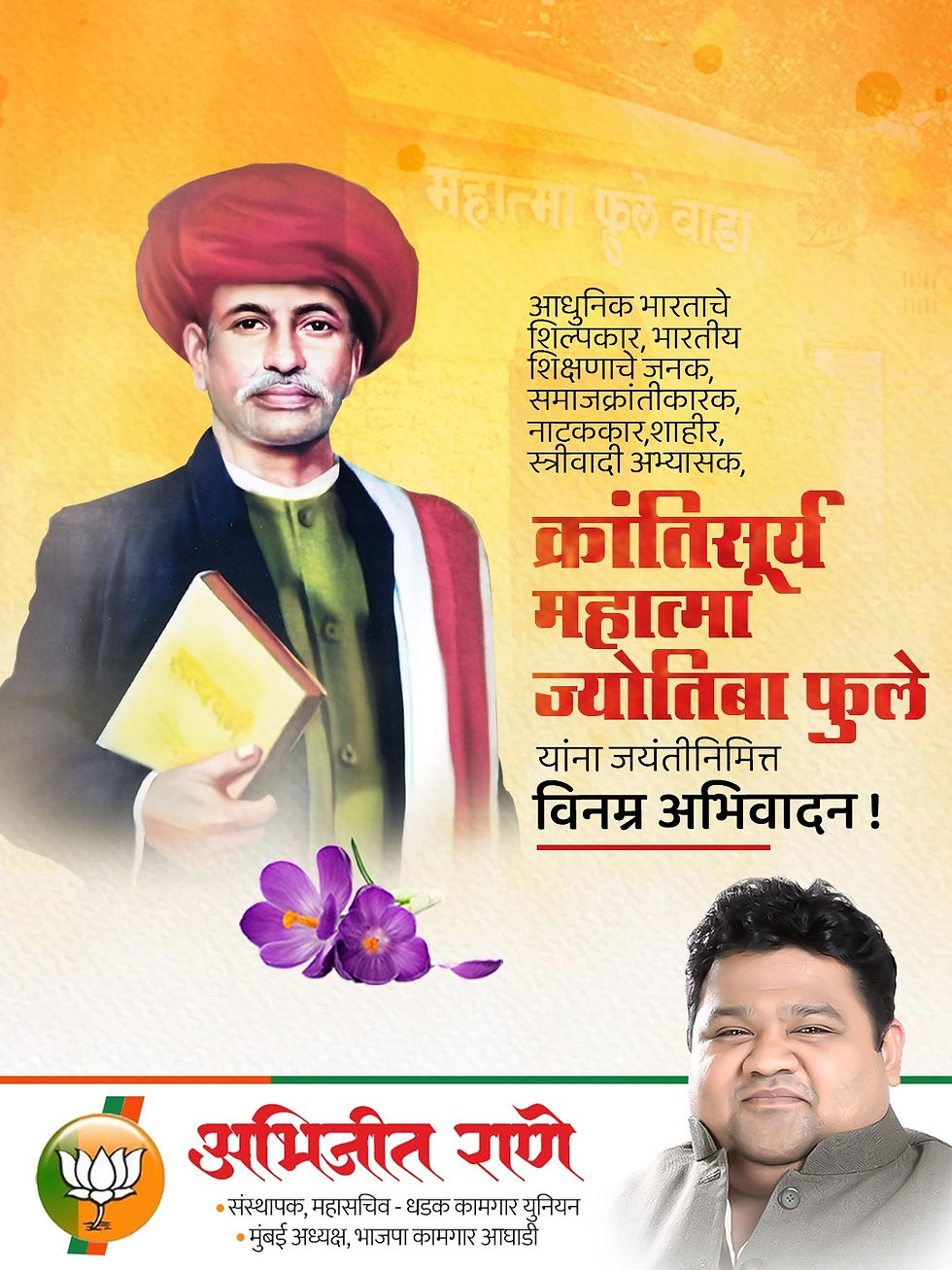 महात्मा जोतिबा फुले यांनी समतेवर आधारित समाजरचना हे सूत्र मानून जाती व्यवस्थेमुळे पोखरलेल्या समाजाला परिवर्तनाची दिशा दिली. अज्ञानाला दूर सारण्यासाठी शिक्षणाचा मार्ग उजागर करत त्यांनी बहुजन आणि स्त्री शिक्षणाची पायाभरणी केली. संपूर्ण आयुष्य बहुजनांच्या उद्धारासाठी समर्पित करणारे महात्मा जोतिबा फुले यांना जयंती दिनी विनम्र अभिवादन!